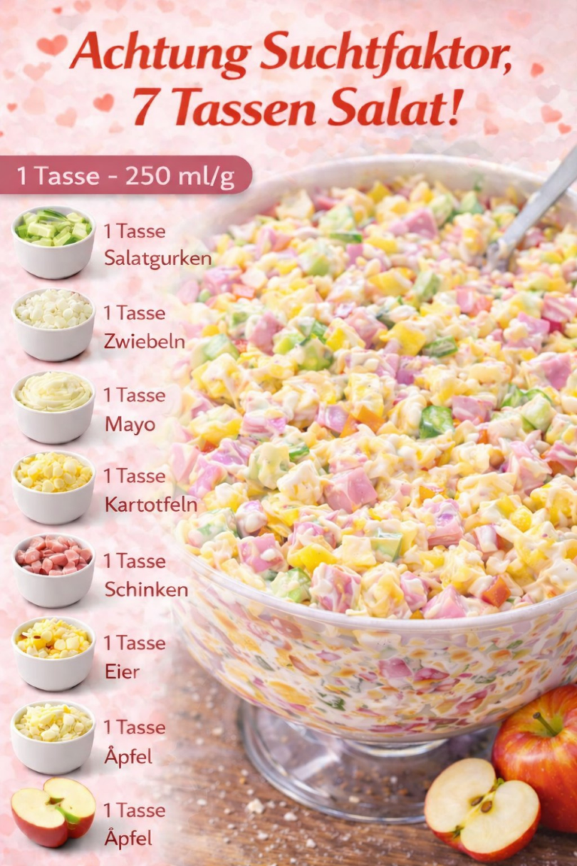 Salat7-Tassen-Salat – der beste Salat überhaupt, cremig & schnell gemacht 😍🥗1 Woche agoAdd Commentby Chefin27 Views Written by ChefinZutaten1 Tasse Salatgurken (gewürfelt, gut abgetropft)1 Tasse Zwiebeln (fein gewürfelt)1 Tasse Mayonnaise1 Tasse Kartoffeln (gekocht & gewürfelt)1 Tasse Schinken (gewürfelt)1 Tasse Eier (hart gekocht & gewürfelt)1 Tasse Äpfel (leicht säuerlich, gewürfelt)Optional: Salz, Pfeffer, ZitronensaftBitte gehen Sie zur nächsten Seite oder klicken Sie auf die Schaltfläche „Öffnen“ (>), um die Kochschritte abzuschließen und vergessen Sie nicht, es mit Ihren Facebook-Freunden zu TEILEN. Page 1 of 2 Prev NextFacebookPinterest
