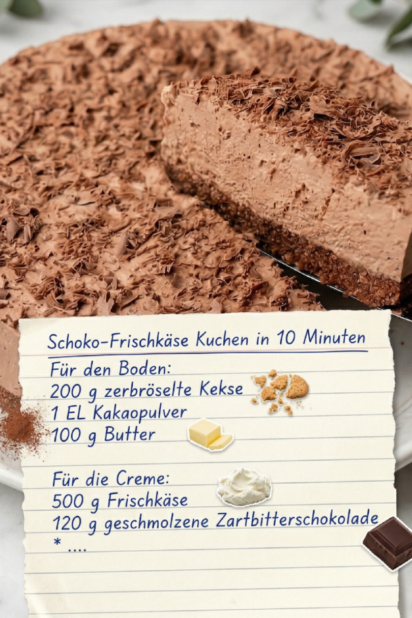 Kuchen & TortenSchoko-Frischkäsekuchen in 10 Minuten – cremig & unwiderstehlich 😍🍫🍰3 Tagen agoAdd Commentby Chefin189 Views Written by ChefinZutatenFür den Boden200 g Kekse (zerbröselt)1 EL Kakaopulver100 g ButterFür die Creme500 g Frischkäse120 g Zartbitterschokolade (geschmolzen)Bitte gehen Sie zur nächsten Seite oder klicken Sie auf die Schaltfläche „Öffnen“ (>), um die Kochschritte abzuschließen und vergessen Sie nicht, es mit Ihren Facebook-Freunden zu TEILEN. Post Views: 91 Page 1 of 2 Prev NextFacebookPinterest