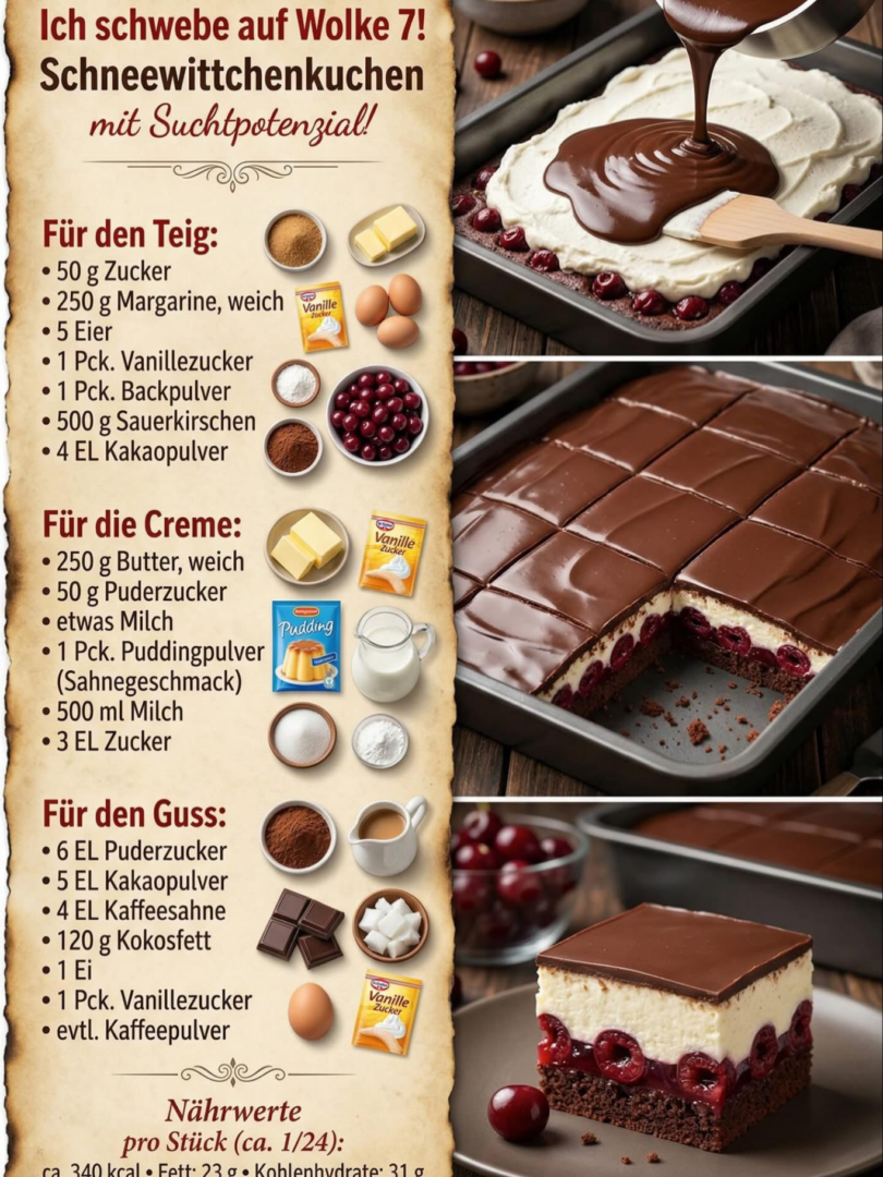 Wie auf Wolke 7 – Schneewittchenkuchen, einfach unwiderstehlich 😍🍒🍰